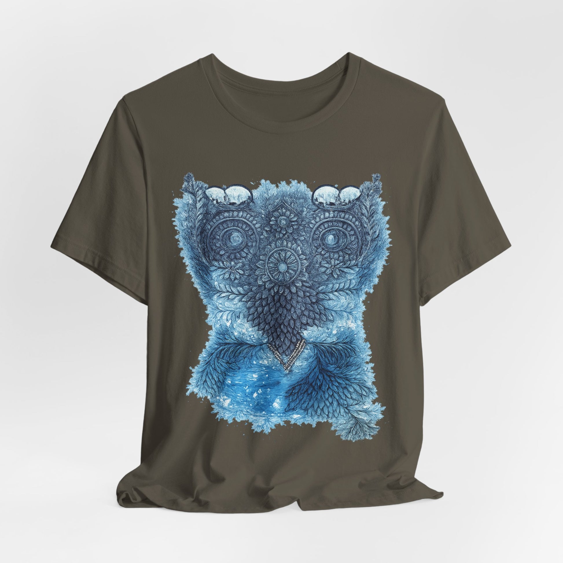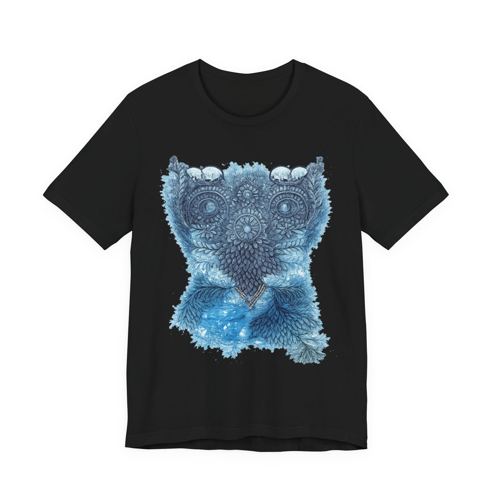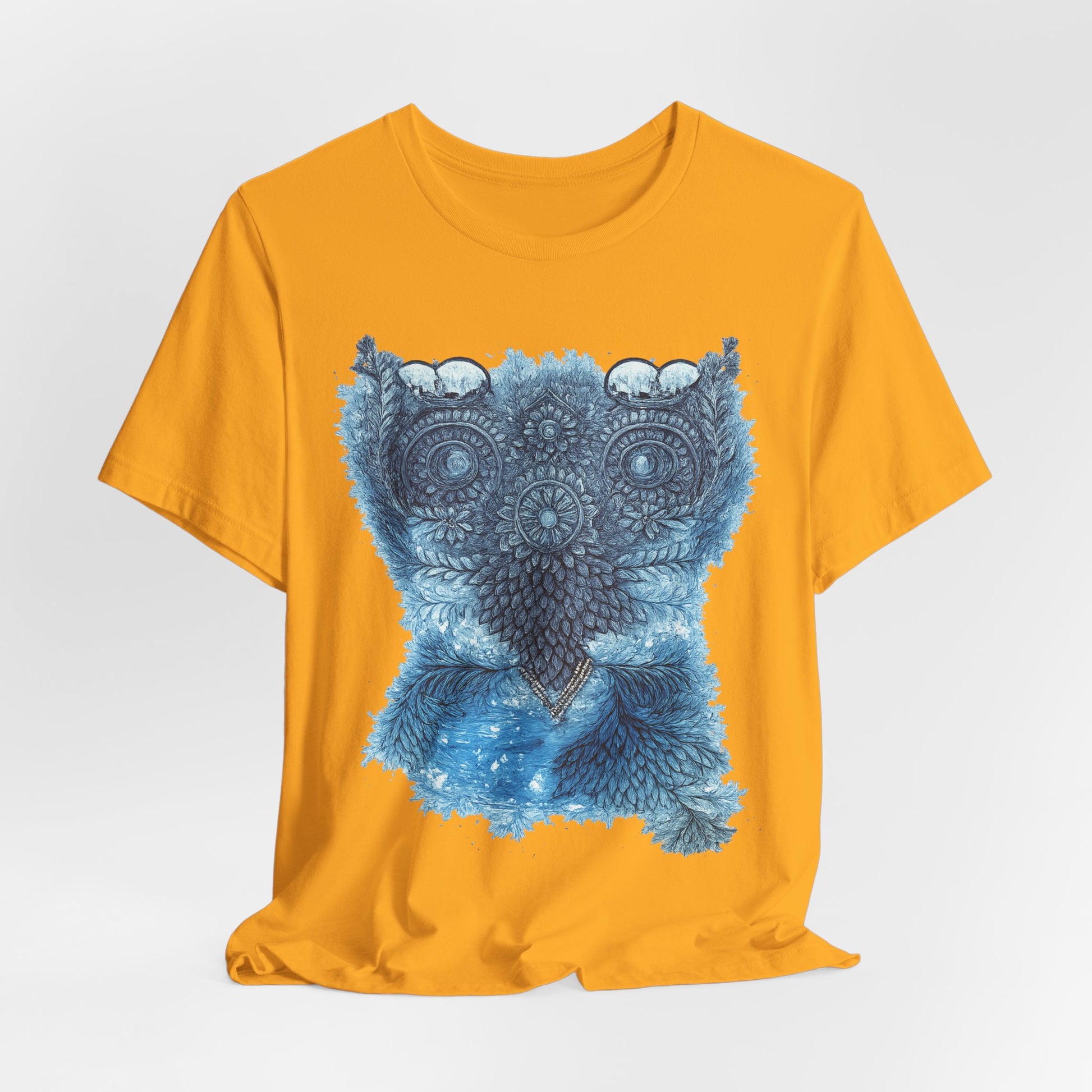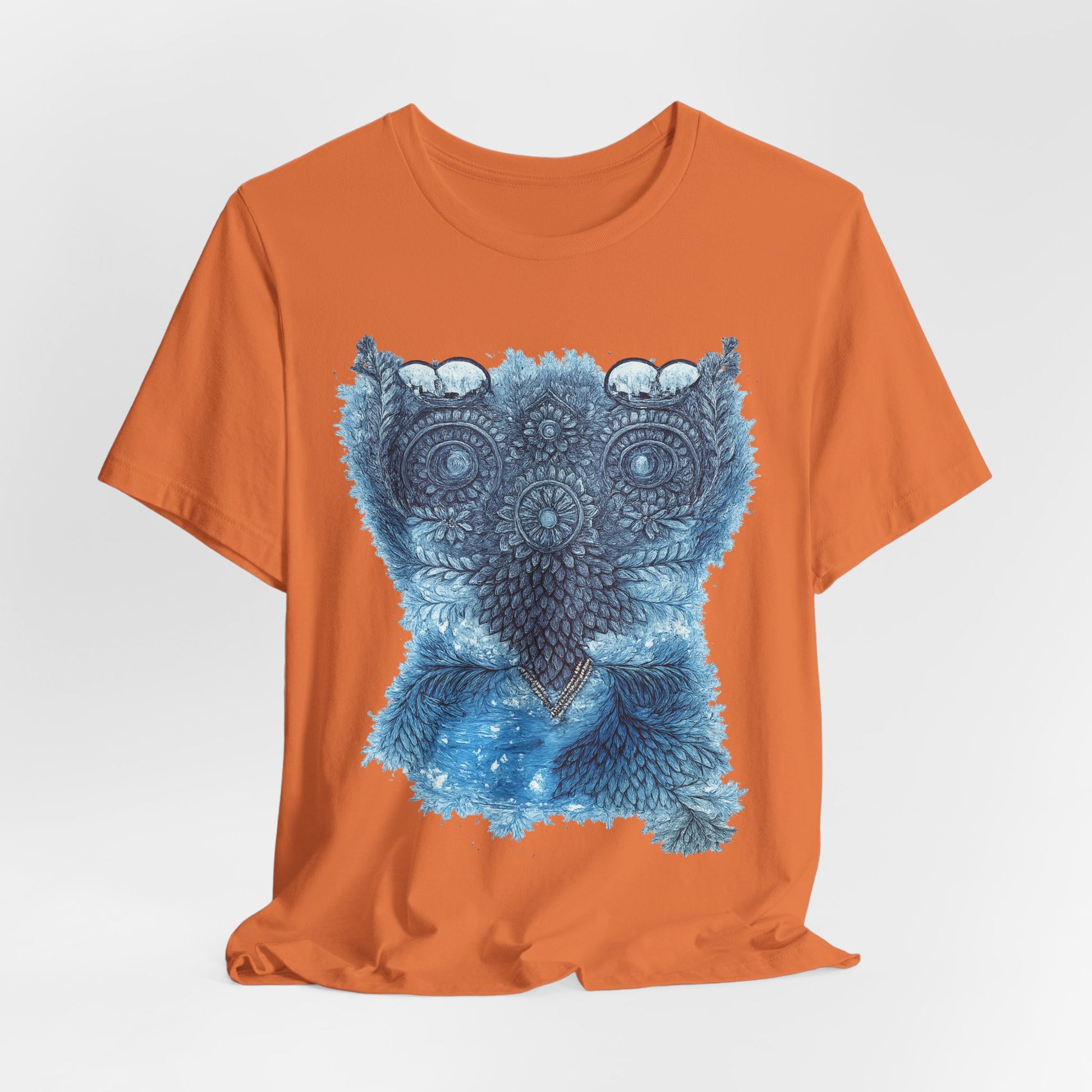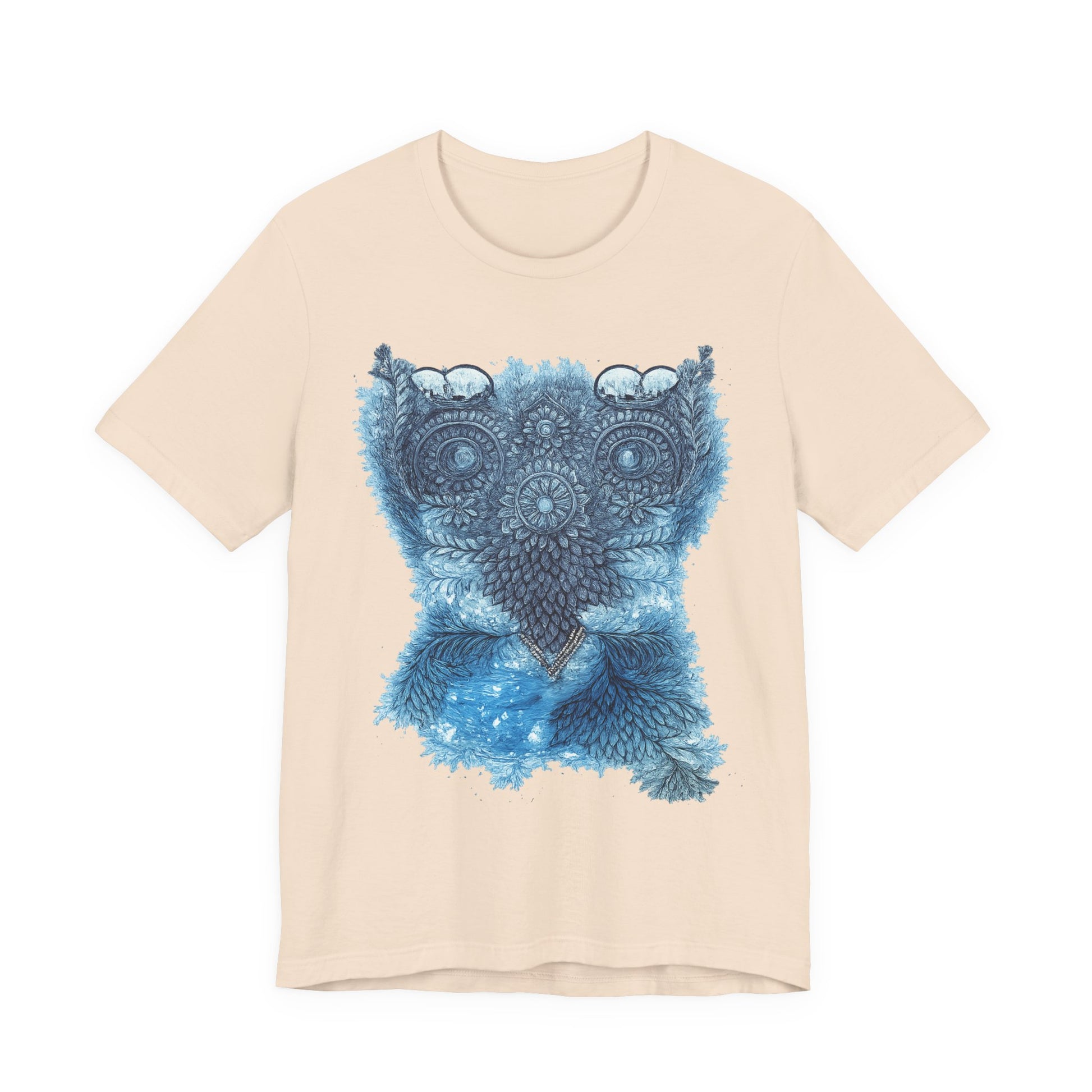 Owl Mandala Graphic Tee — Blue Ornamental Owl T-Shirt