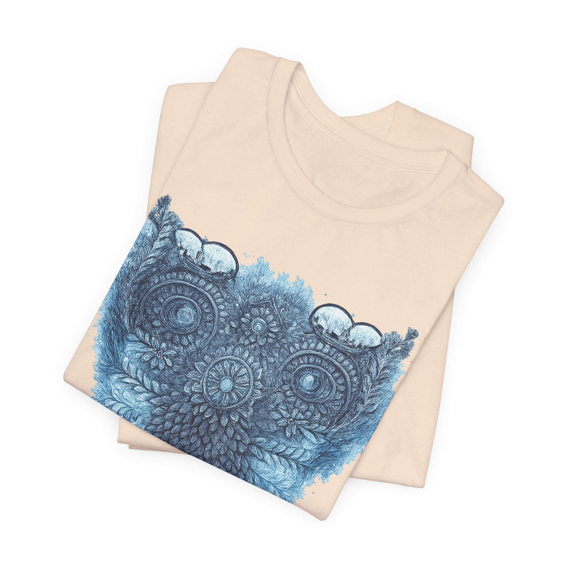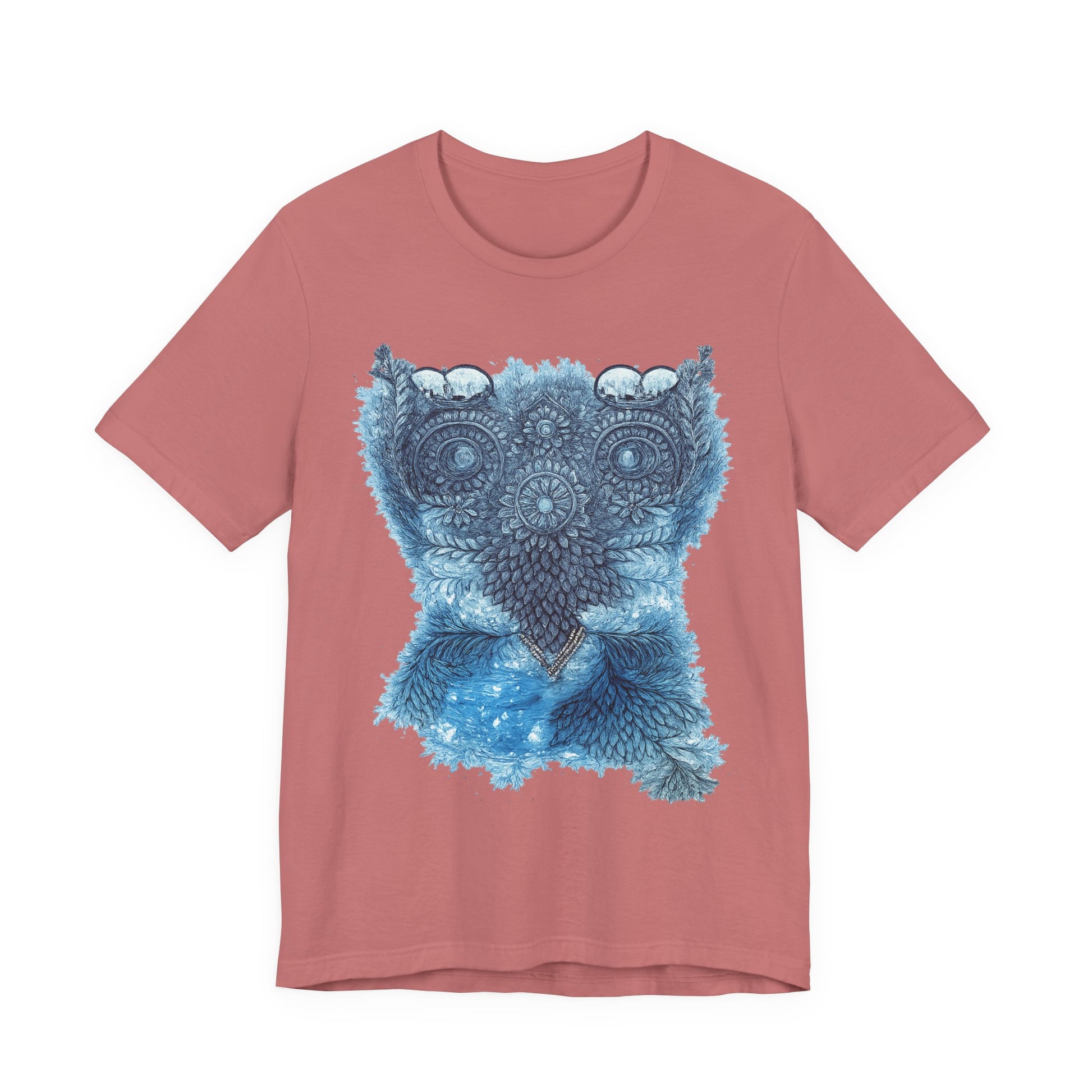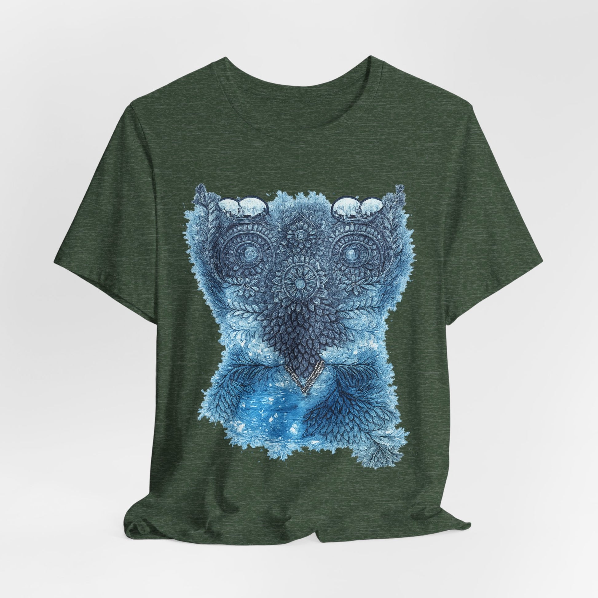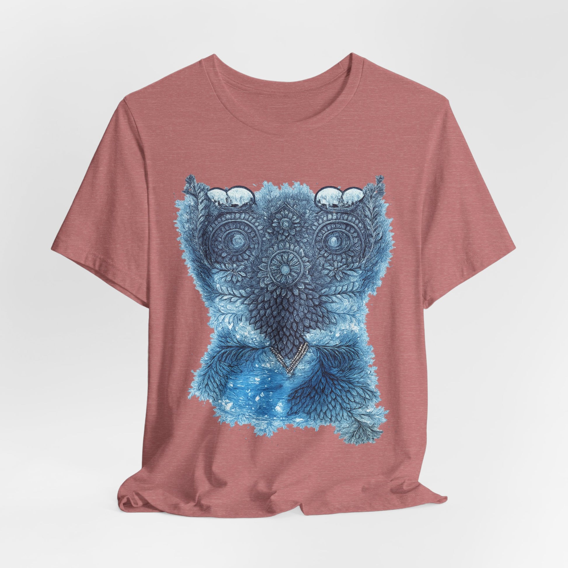 This lightweight tee carries a calm, detailed energy — an ornamental owl mandala in soothing blues that feels like a quiet evening on the porch, watching shadows lengthen. The fine-line owl motif sits centered and intricate, drawing the eye without shouting. Wear it folded under a denim jacket or alone on warm nights; the breathable Airlume cotton keeps you cool while the retail fit looks tidy whether you’re at a local market or tucked into a reading nook. The soft ribbed collar and shoulder tape keep the silhouette crisp wash after wash, while the tear-away label keeps comfort uncompromised. It’s for people who notice small details, who collect quiet rituals and slow afternoons, and who want an everyday shirt that reflects a thoughtful, slightly mystical aesthetic.