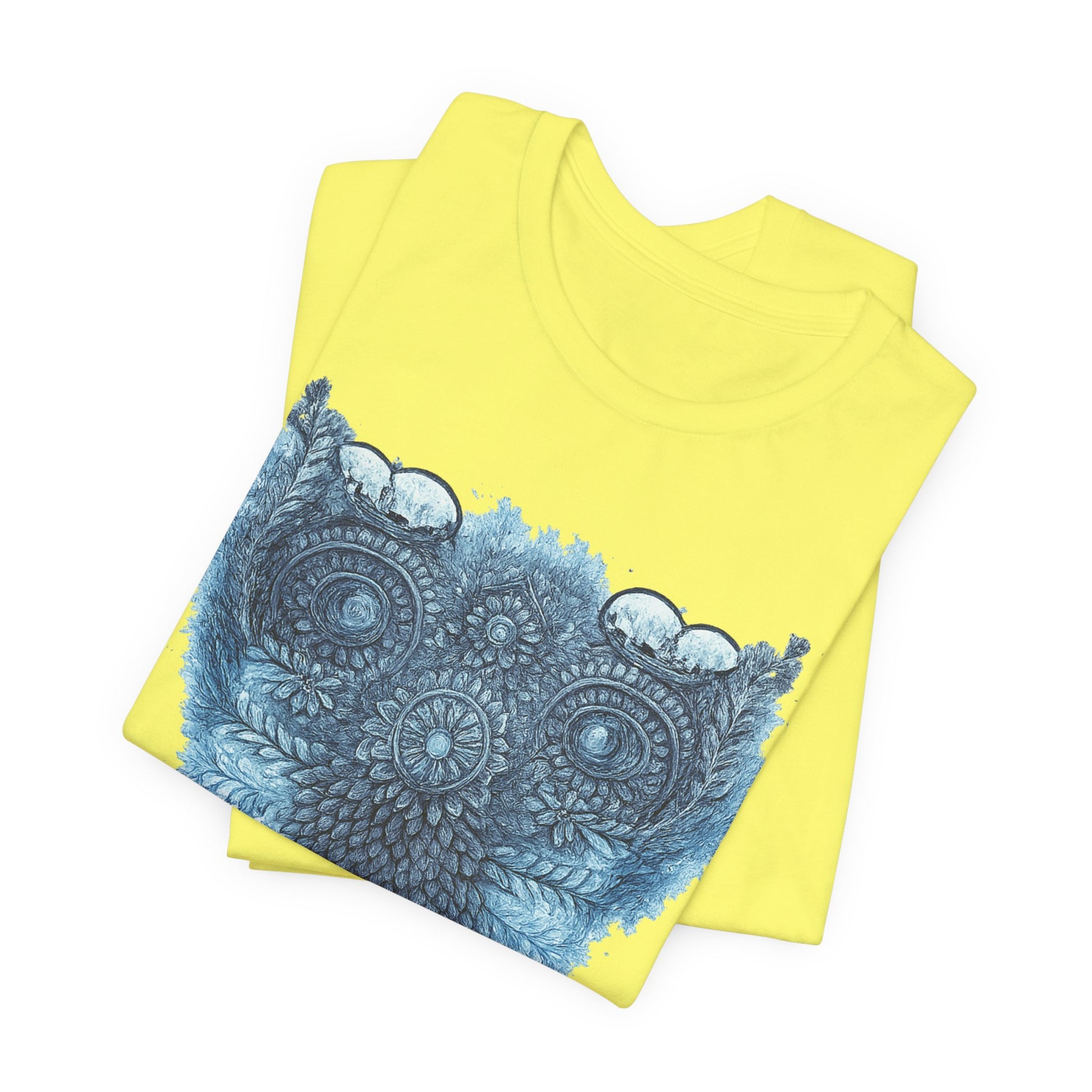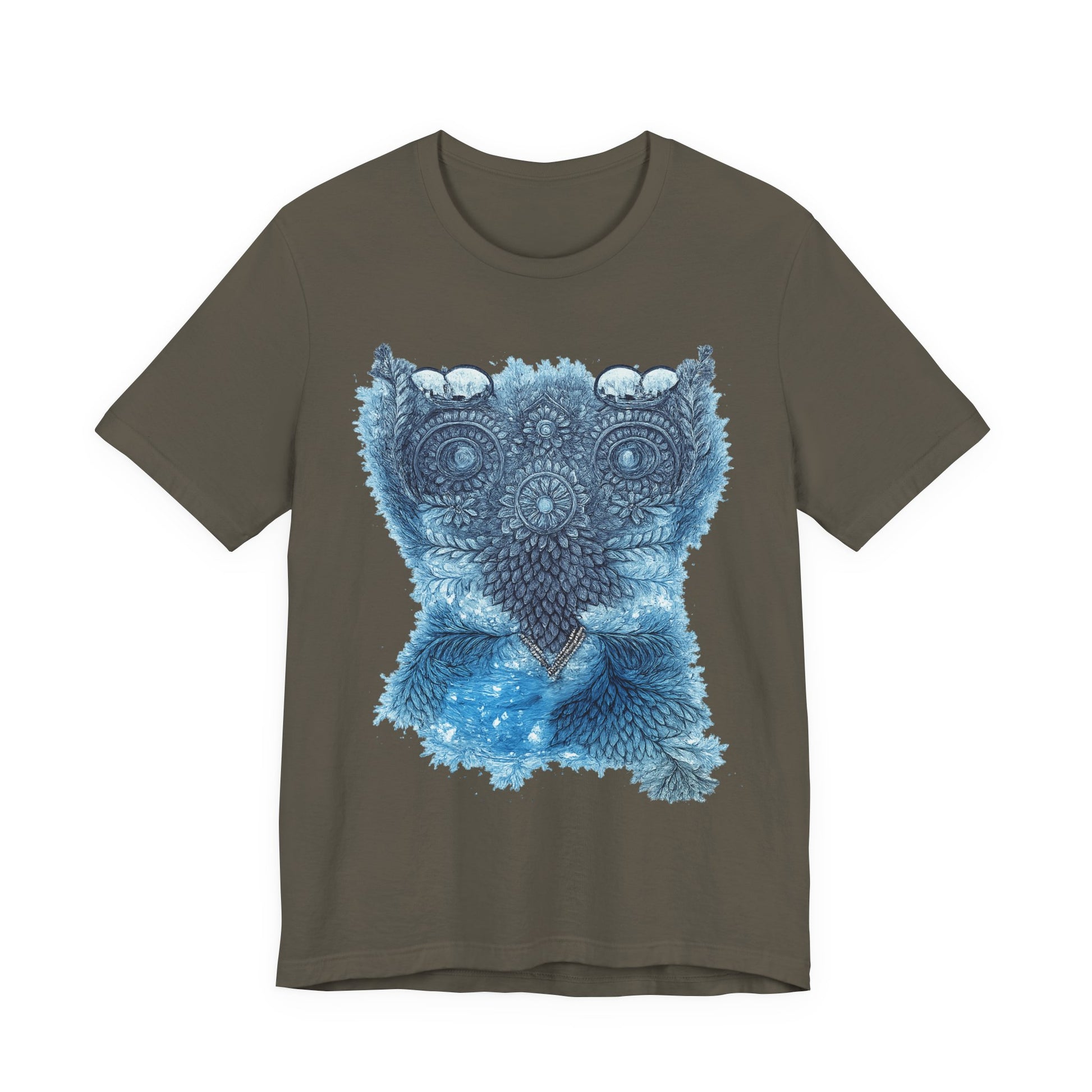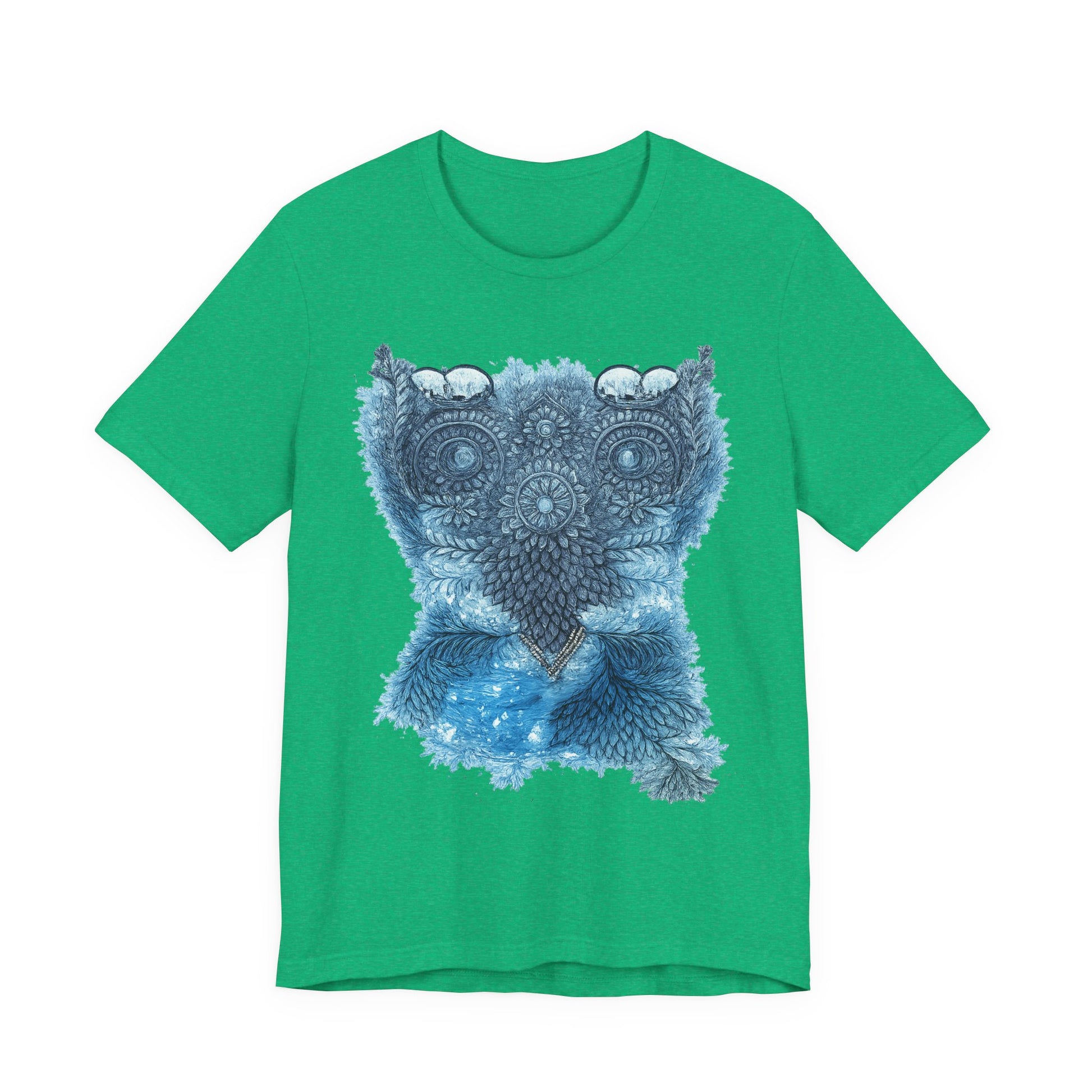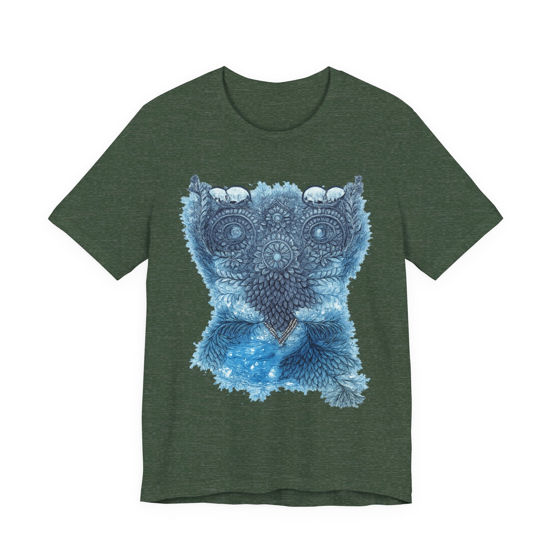 This lightweight tee carries a calm, detailed energy — an ornamental owl mandala in soothing blues that feels like a quiet evening on the porch, watching shadows lengthen. The fine-line owl motif sits centered and intricate, drawing the eye without shouting. Wear it folded under a denim jacket or alone on warm nights; the breathable Airlume cotton keeps you cool while the retail fit looks tidy whether you’re at a local market or tucked into a reading nook. The soft ribbed collar and shoulder tape keep the silhouette crisp wash after wash, while the tear-away label keeps comfort uncompromised. It’s for people who notice small details, who collect quiet rituals and slow afternoons, and who want an everyday shirt that reflects a thoughtful, slightly mystical aesthetic.